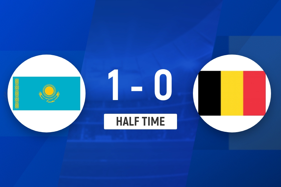 上半场比赛舍弃,哈萨克斯坦1-0比利时。
