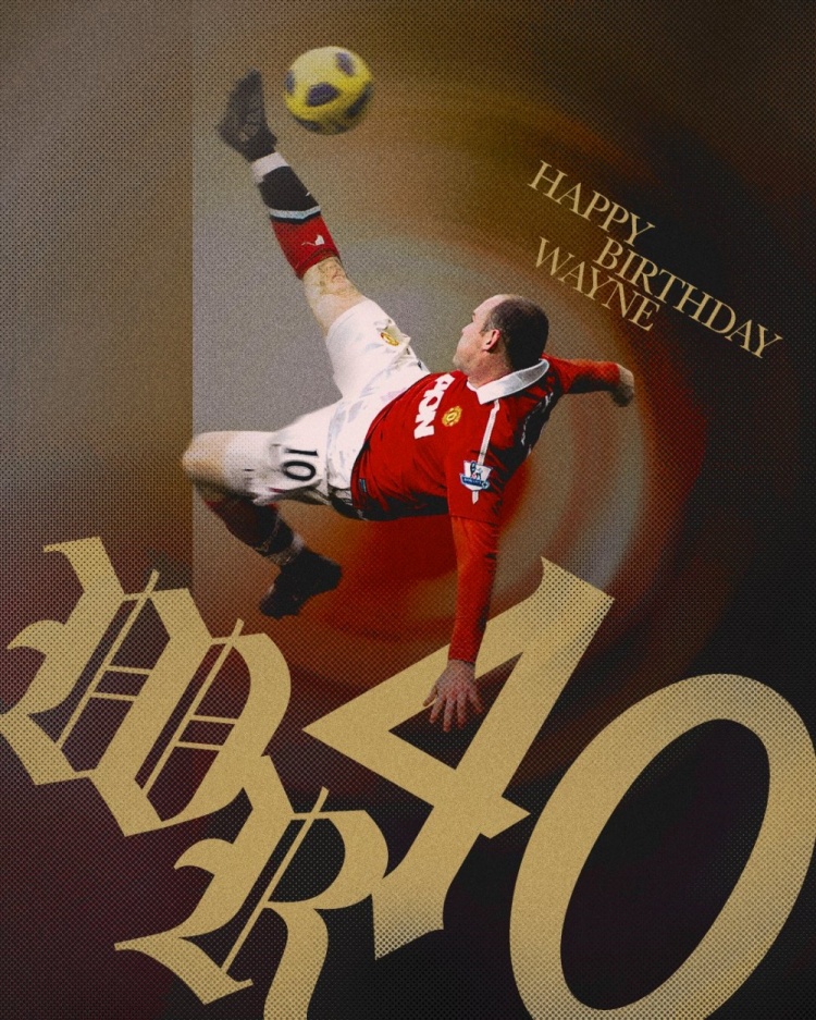 10月24日讯 今天是曼联外传球星韦恩-鲁尼的40岁寿辰,曼联官推晒出海报发文为他奉上祝颂。