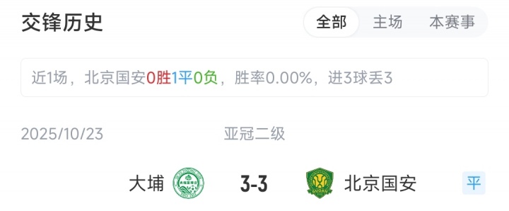 本场比赛运转前,北京国安小组赛2平1负积2分,排行亚冠二级E组积分榜第4;大埔1胜1平1负积4分,排行小组第3。两队首回合交锋,北京国安客场3-3战平大埔。