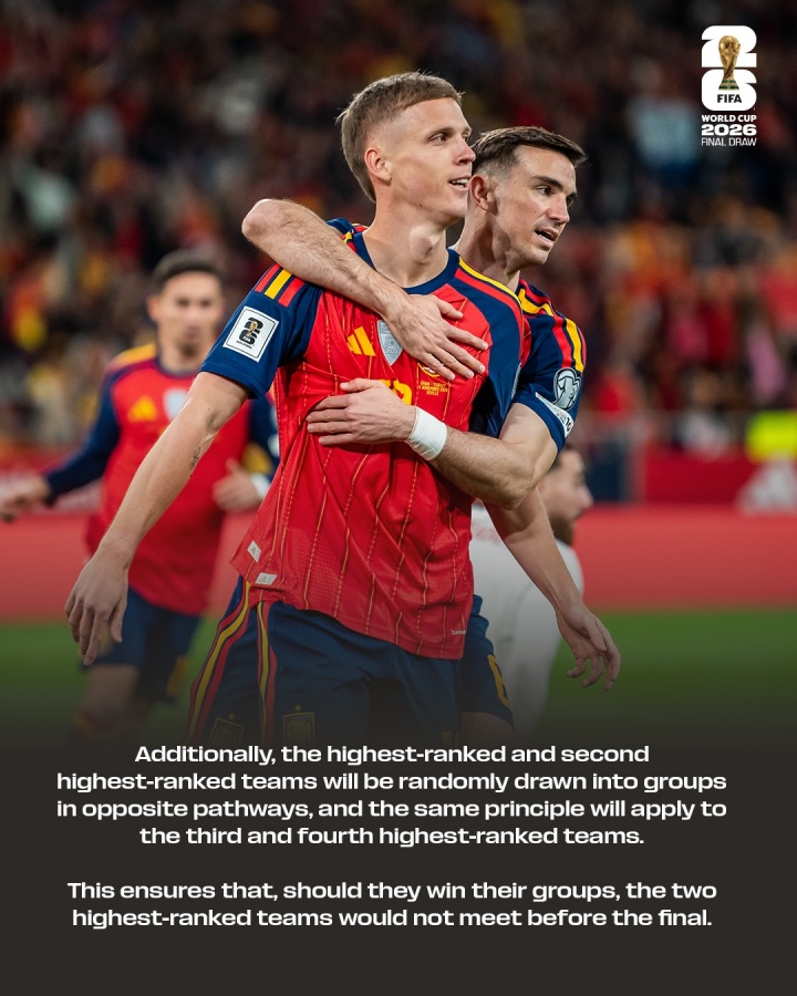 11月26日讯 国外足联公布2026天下杯抽签法例和分档,天下名次前四的球队若晋级淘汰赛将两两分半区。