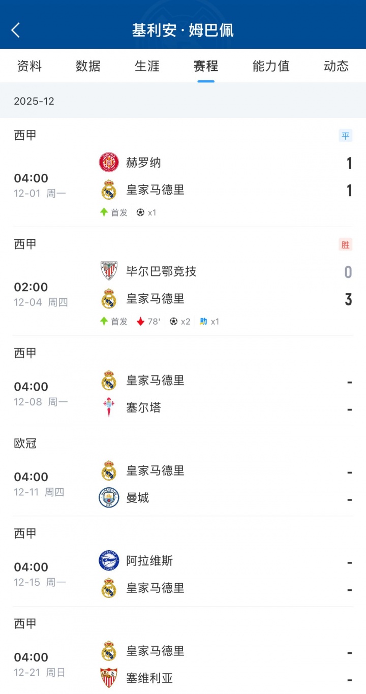 12月04日讯 西甲第19轮,皇马3-0客胜毕尔巴鄂竞技,姆巴佩2射1传,本年各赛事63场打进62球。据统计,他在21世纪当然年进球榜上还是升到了第5位!