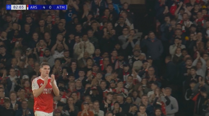 10月22日讯 阿森纳vs马竞第83分钟,约克雷斯下场,秉承全场掌声!
