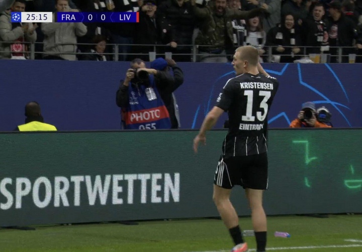 10月23日讯 欧冠联赛阶段第3轮利物浦客战法兰克福第25分钟,维尔茨被断法兰克福发起反击,克里斯滕森破门,利物浦0-1逾期!
