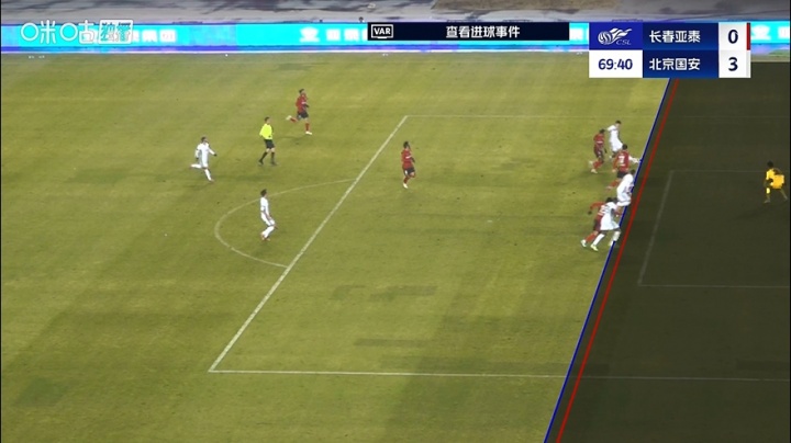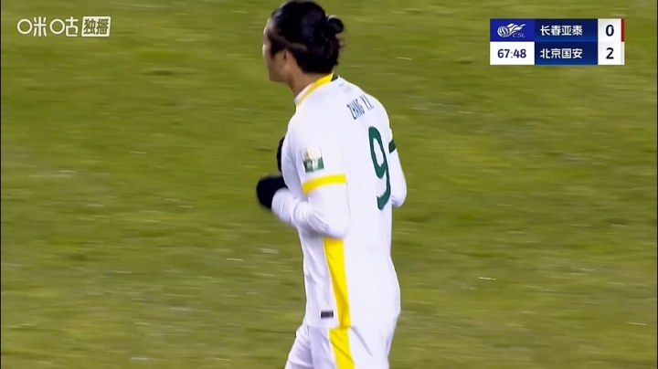 11月01日讯 中超第29轮 长春亚泰vs北京国安。比赛第68分钟,张玉宁替补破门。VAR介入判越位在先,张玉宁进球无效,亚泰仍0-2国安