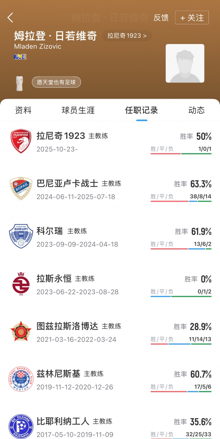 日若维奇本年10月23日刚接办拉尼奇1923,只指导球队踢了两场比赛。