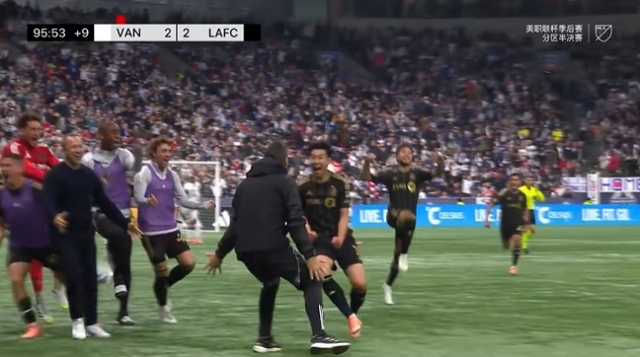 比赛下半场伤停补时第5分钟,孙兴慜纵情球径直破门,洛杉矶2-2绝平温哥华。
