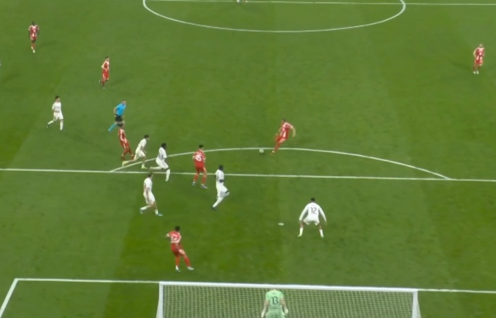 放他这么打?皇马危险区域 弧顶附近无人贴身干扰/封堵 凯恩打出贴地斩