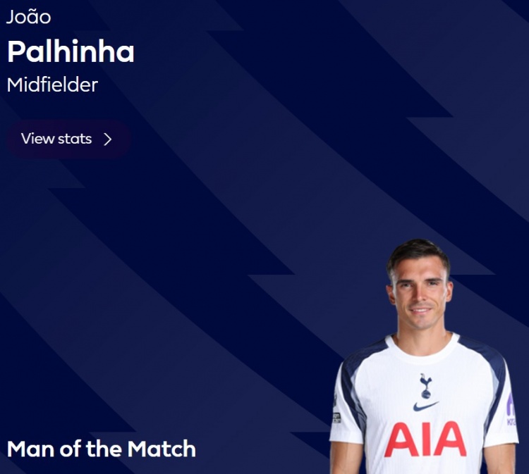 本场比赛热刺中场帕利尼亚融会出色,不仅打进一球,还孝顺4次抢断,12次起义8次见效。赛后他也当选英超官方球迷票选全场最好球员。