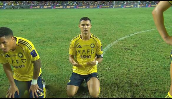 第一轮:伊万-托尼主罚掷中,C罗主罚掷中,随后跪地祷告;