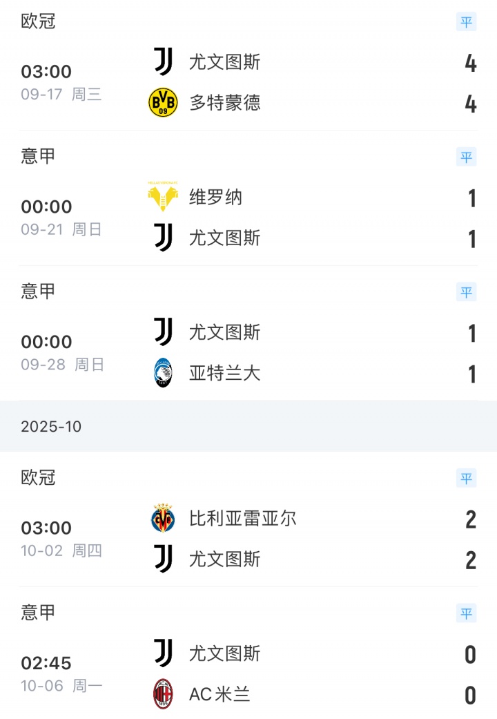 真就不输当赢?尤文际遇赛季5连平,跨越上赛季最长4连平的记载