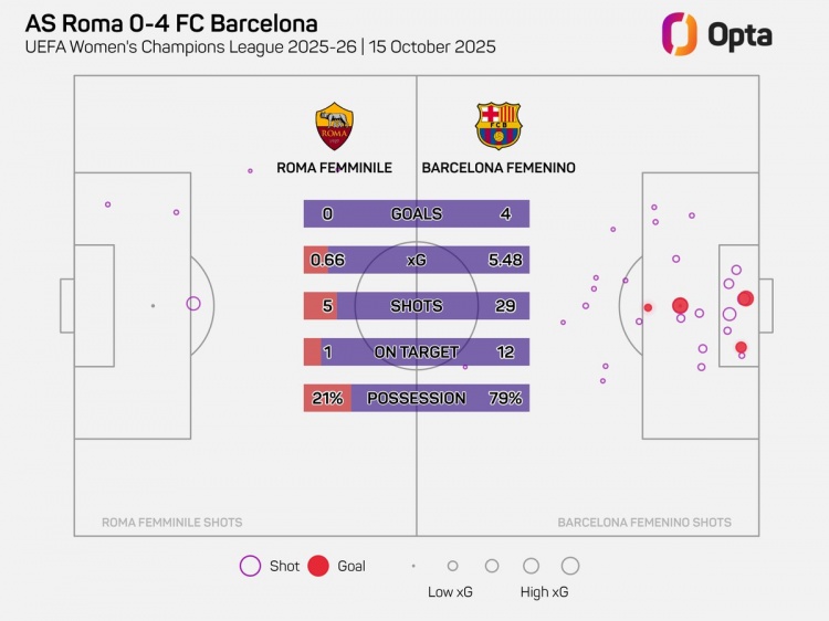 10月16日讯 女足欧冠联赛阶段第二轮比赛,巴萨女足客场4-0大捷罗马女足。