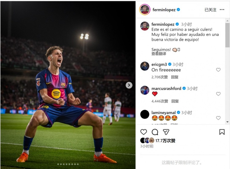 助攻双响!费尔明社媒晒情怀庆祝像片:这等于前进的标的