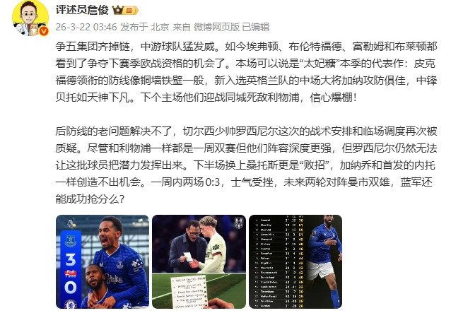 转播吧03月22日讯本轮英超,利物浦、切尔西双双输球,詹俊发文点评了今天的对抗赛。