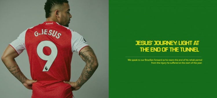 10月29日讯 遭受经久伤病的阿森纳时尚热苏斯已接近康复期的尾声,球员罗致了阿森纳官网的专访。自一月份在足总杯对阵曼联的比赛中遭受前十字韧带挫伤后,热苏斯便一直缺席比赛。