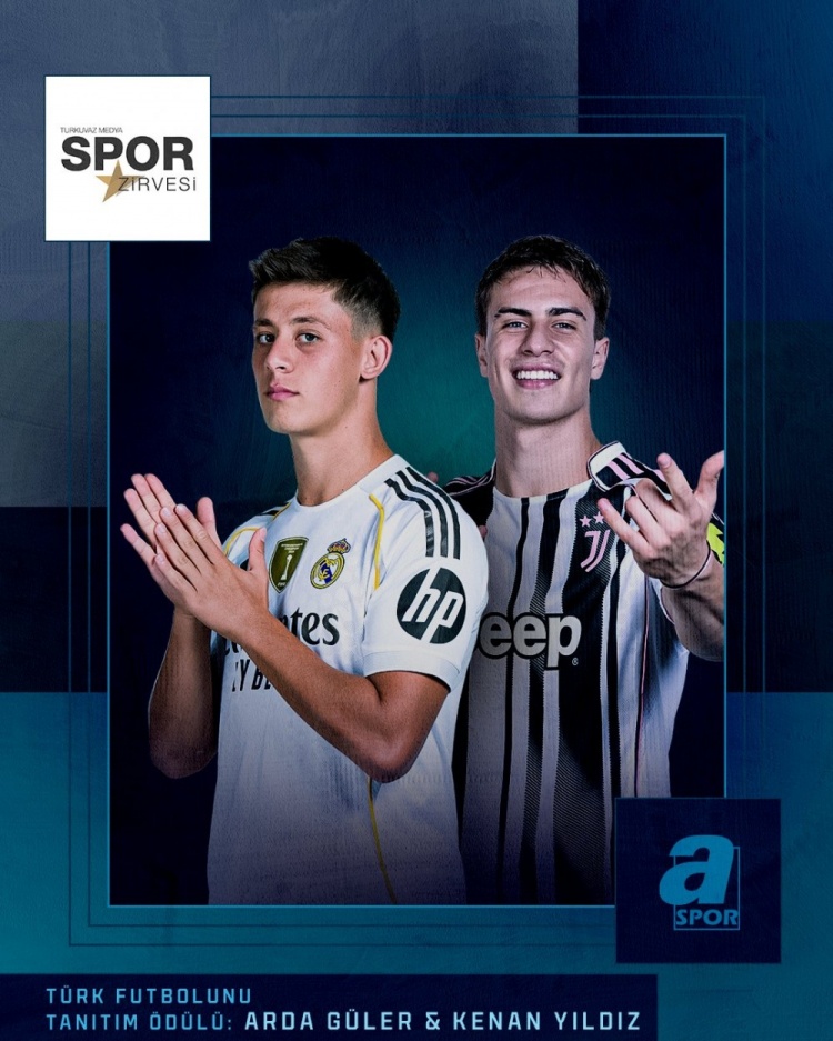 在Spor Zirvesi授奖庆典之中,皇马中场居莱尔、尤文时尚伊尔迪兹赢得土耳其足球执行奖。